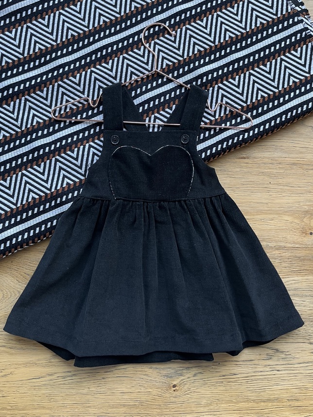 Robe salopette pour bébé fille en velours côtelé noir, souple et agréable à porter, entièrement faite main dans mon atelier.