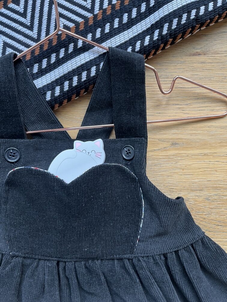Intemporelle et pleine de caractère, cette robe salopette pour fillette en velours noir a été entièrement réalisée à la main dans mon atelier. Pensée comme une pièce à la fois élégante et confortable, elle accompagne les tout-petits dans leurs découvertes du quotidien avec douceur et liberté.